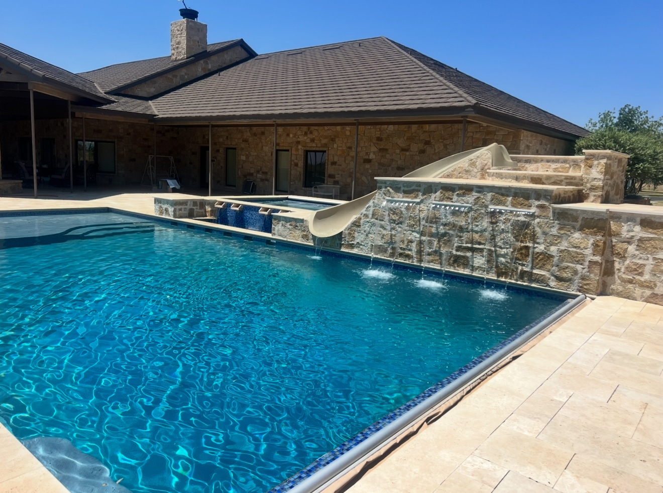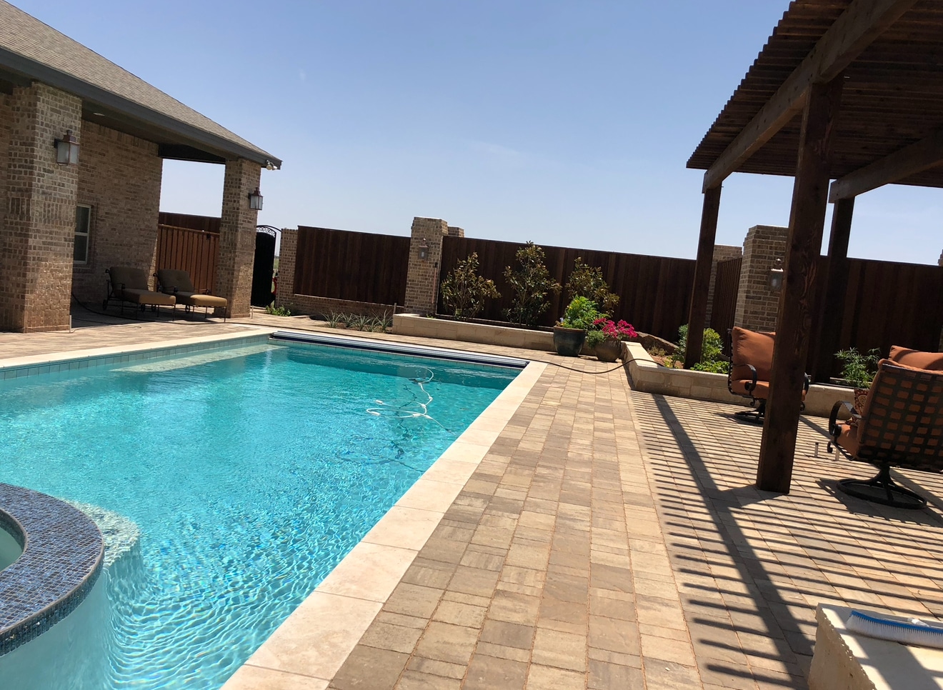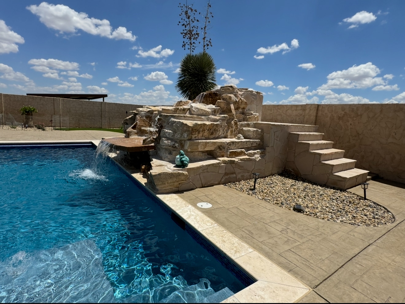 Welcome to our Outdoor Living Gallery, where inspiration comes to life! At Oasis, we take immense pride in transforming our clients’ outside dreams into breathtaking realities across Lubbock, Midland, Amarillo, and the entire West Texas area. This gallery is a testament to our dedication to high-quality craftsmanship, innovative design, and complete customer satisfaction. Here, you’ll discover a curated collection of our completed projects, showcasing the diverse range of custom pools, luxurious outdoor living spaces, meticulously designed landscapes, and intricate patterned concrete work we’ve created. Each image tells a story of vision realized, highlighting how we seamlessly tie homes and outdoor areas together to create truly personal oases. We invite you to explore our work and envision the possibilities for your own backyard sanctuary.